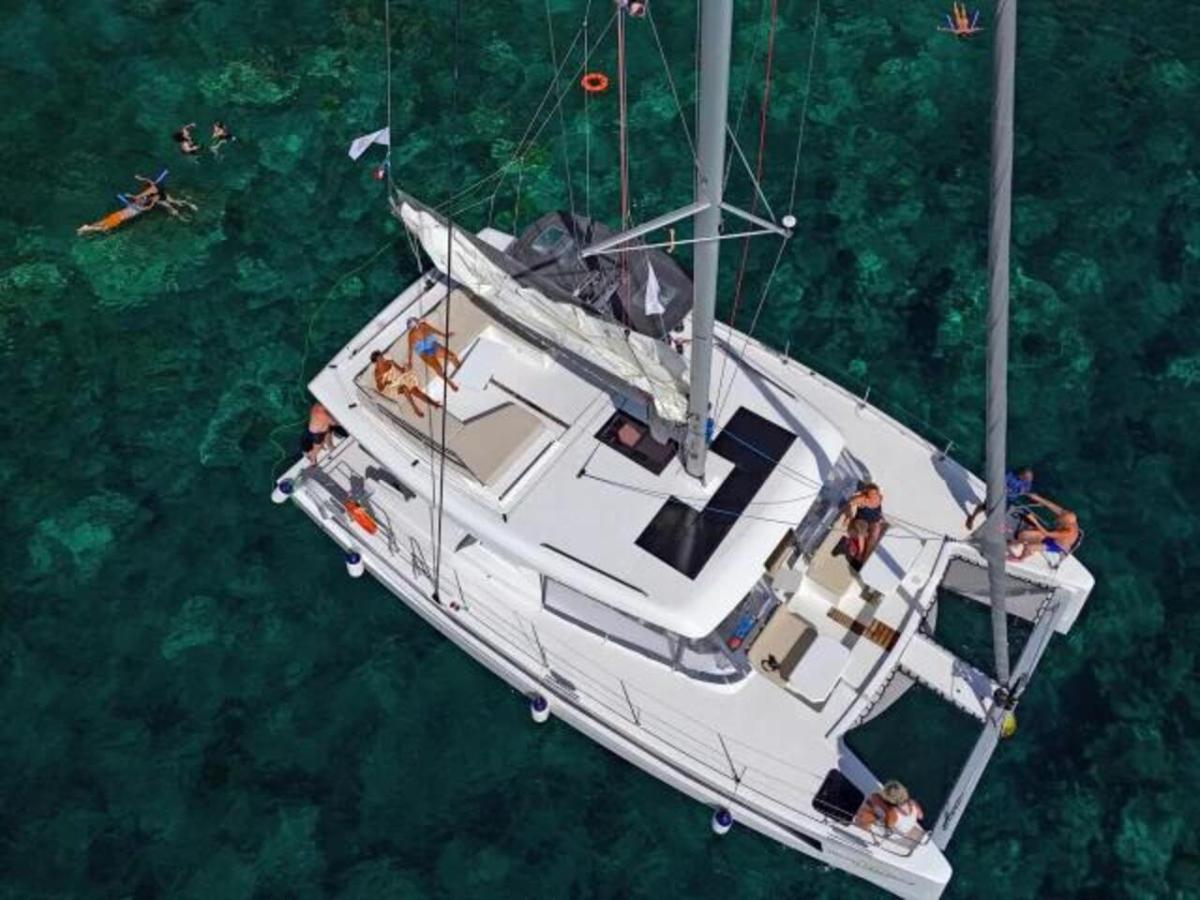 Depuis la plage de Santa Giulia, embarquez en fin de journée pour une parenthèse enchantée entre mer calme et lumière dorée. À bord de notre Catamaran l'Allegria, cette escapade vous invite à découvrir la côte sous un angle insolite, alors que le soleil se couche lentement sur la Méditerranée.