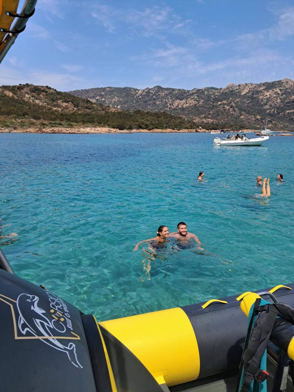 Next, we anchor in the calm, crystal-clear waters of Fazzio Lagoon. On board, you will be offered a Corsican aperitif: charcuterie, cheese, wine, beer and cold drinks. Seascooters, masks and snorkels are available to prolong your time in the water.